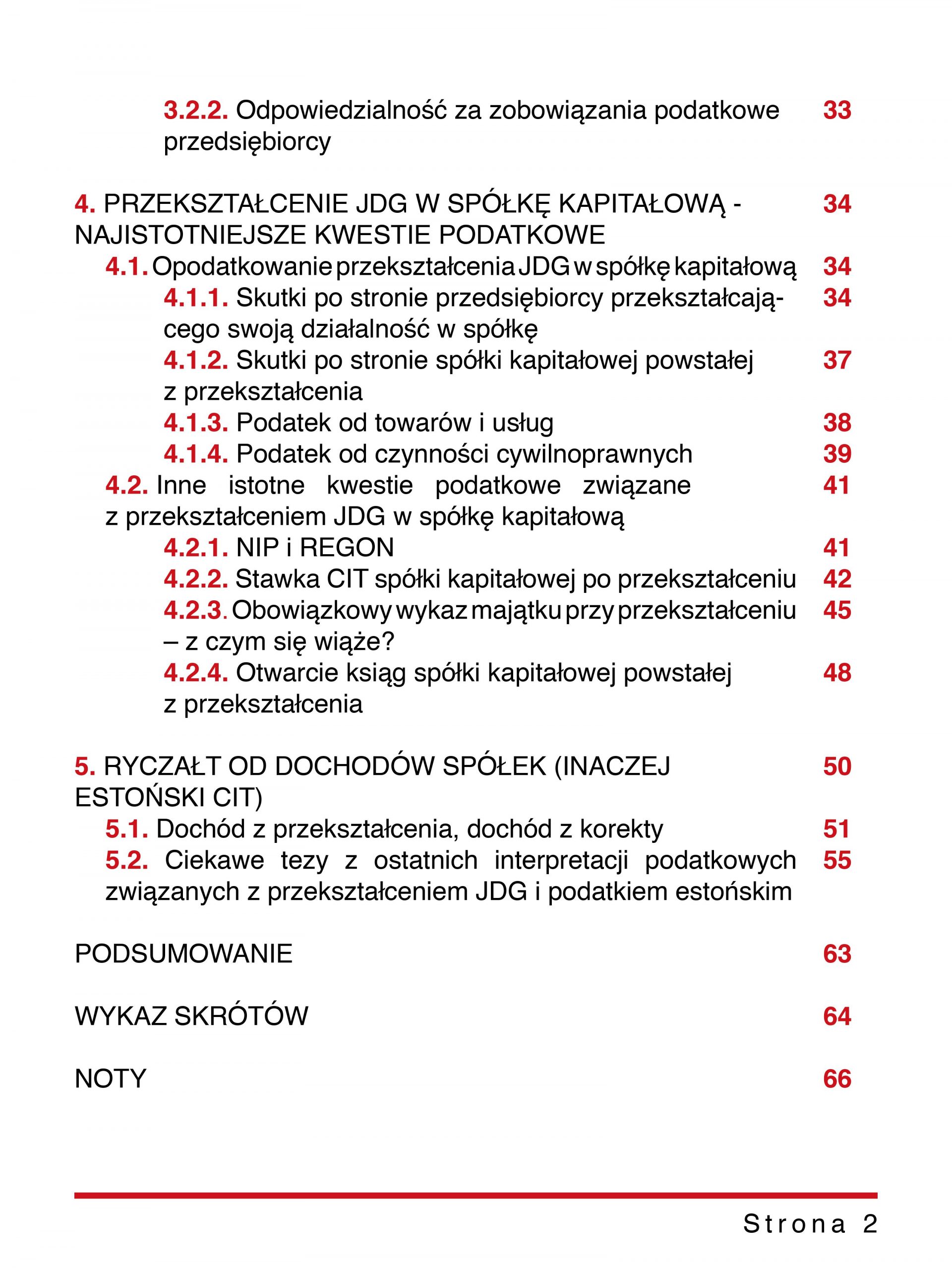 Poniżej spis treści dostępnych w e-booku „Przekształcenie przedsiębiorcy w spółkę kapitałową jako wstęp do podatku estońskiego(z uwzględnieniem najnowszych interpretacji podatkowych)”.